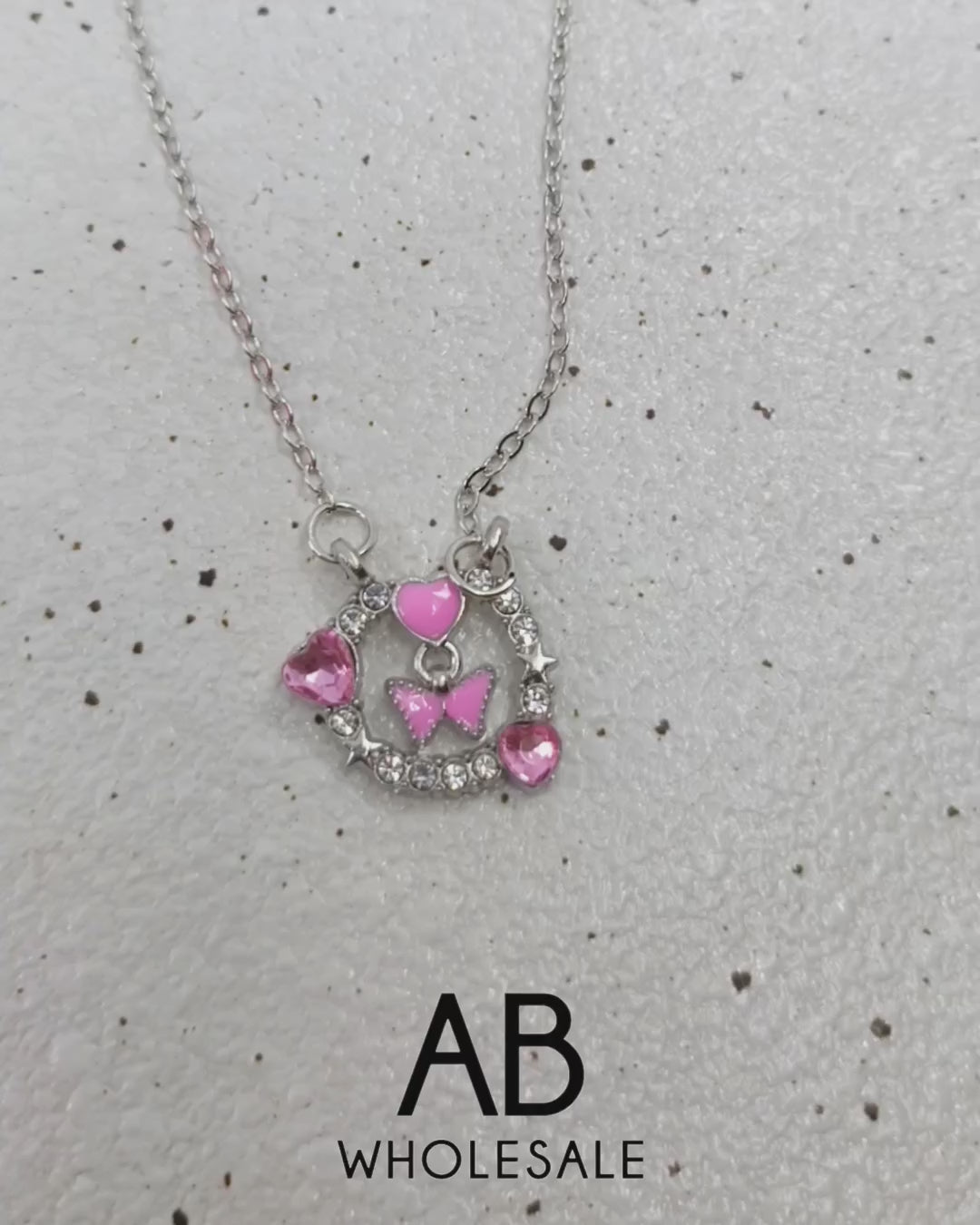 UNI-10259- Pink Butterfly & Heart Circle - Necklace