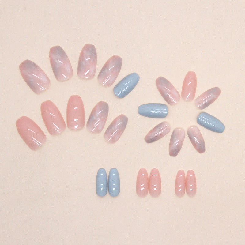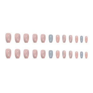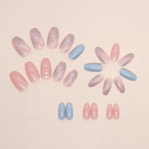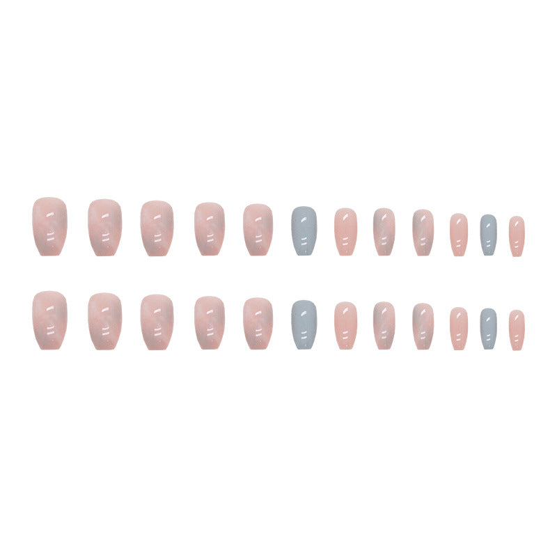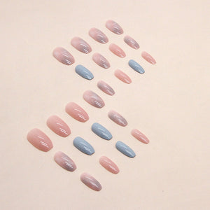 N-104- Pastel Pink & Blue - Press On Nail Set Of 24