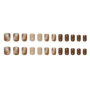 N-119 - Silver Sparkle & Chocolate Color - Press On Nail Set Of 24