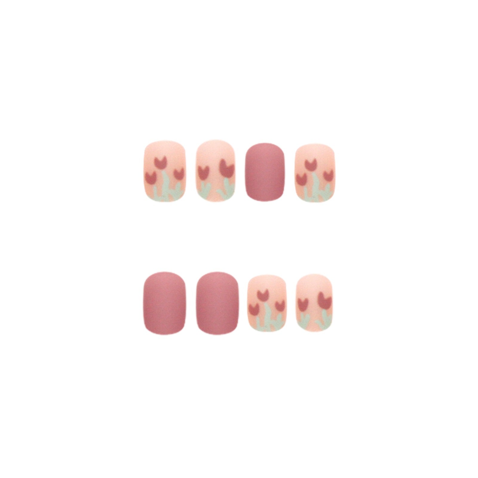 N-130 - Morandi Pink &Flowers - Press On Nail Set Of 24