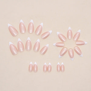N-138 - Pink & White - Press On Nail Set Of 24 - Free 24 Pcs Sticker Sheet Included