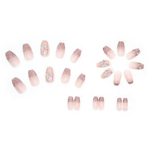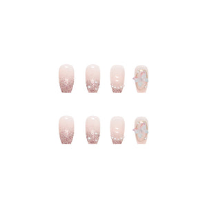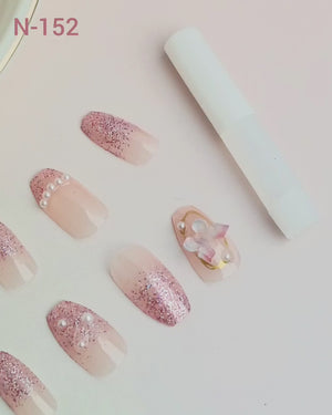 N-152 - Pink Sparkle Butterfly - Press On Nail Set Of 24