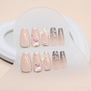 N-165 - Fantasy Butterfly & Pearl - Press On Nail Set Of 24
