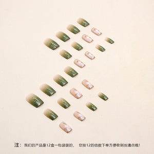 N-180 - Dream Flowers & Silver Sparkle Green - Press On Nail Set Of 24