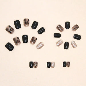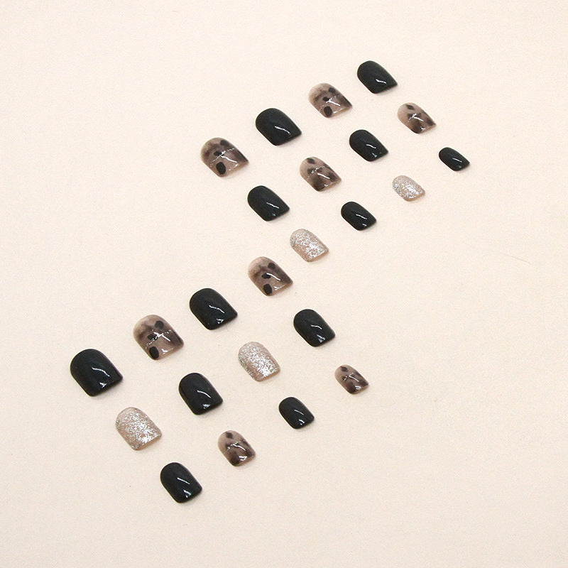 N-194 - Fancy Foiled Black & Mix - Press On Nail Set Of 24