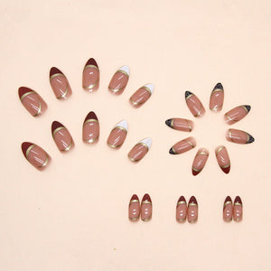 N-255 - Foiled Line - Press On Nail Set Of 24 - Free 24 Pcs Sticker Sheet Included