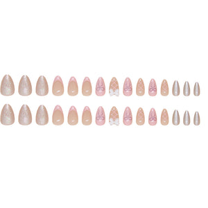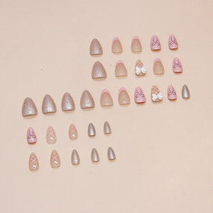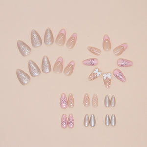 N-258 - Pastel Pink Bow - Press On Nail Set Of 24 - Free 24 Pcs Sticker Sheet Included
