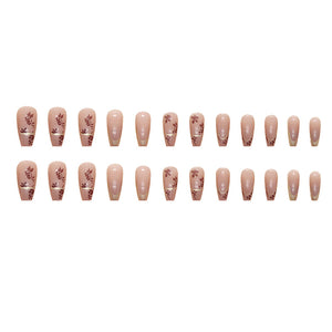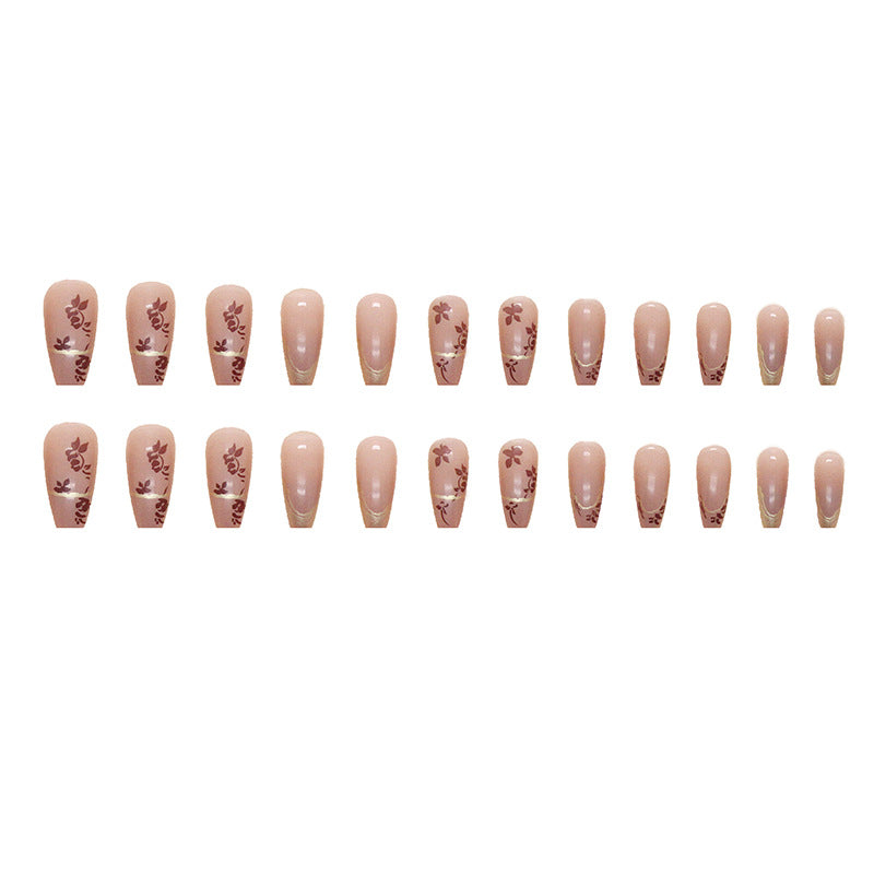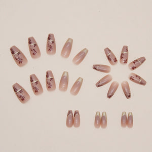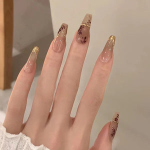 N-263 - Foiled Flower - Press On Nail Set Of 24 - Free 24 Pcs Sticker Sheet Included