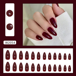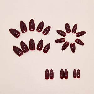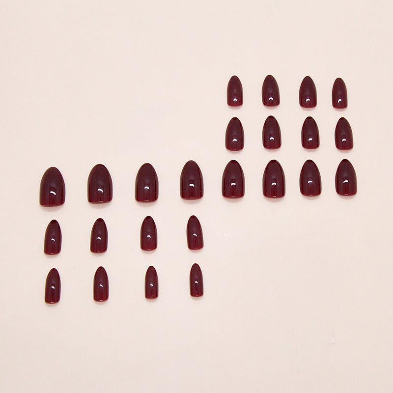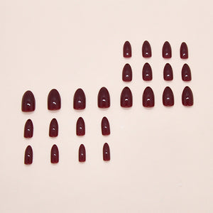 N-304 - Shiny Maroon - Print Press On Nail Set Of 24 - Free 24 Pcs Sticker Sheet Included