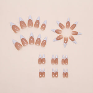 N-309 - Coffee Latte - Print Press On Nail Set Of 24 - Free 24 Pcs Sticker Sheet Included
