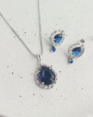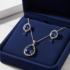 PJ-103 - Navy Blue Natural Stone Silver - Jewelry Set