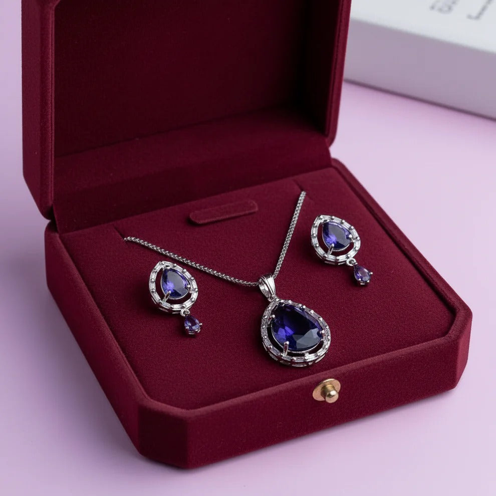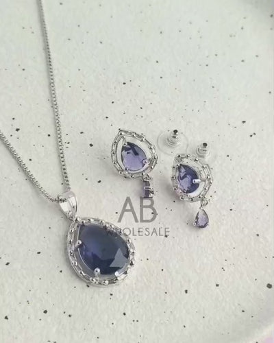 PJ-104 - Purple Natural Stone Silver - Jewelry Set