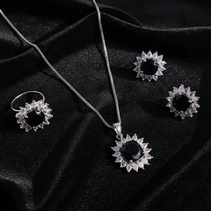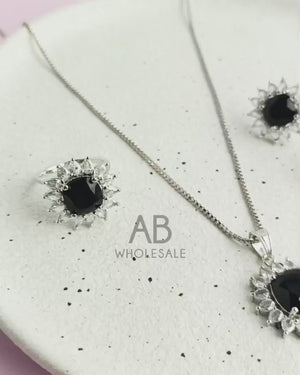 PJ-105 - Black Natural Stone Silver - Jewelry Set Of 3