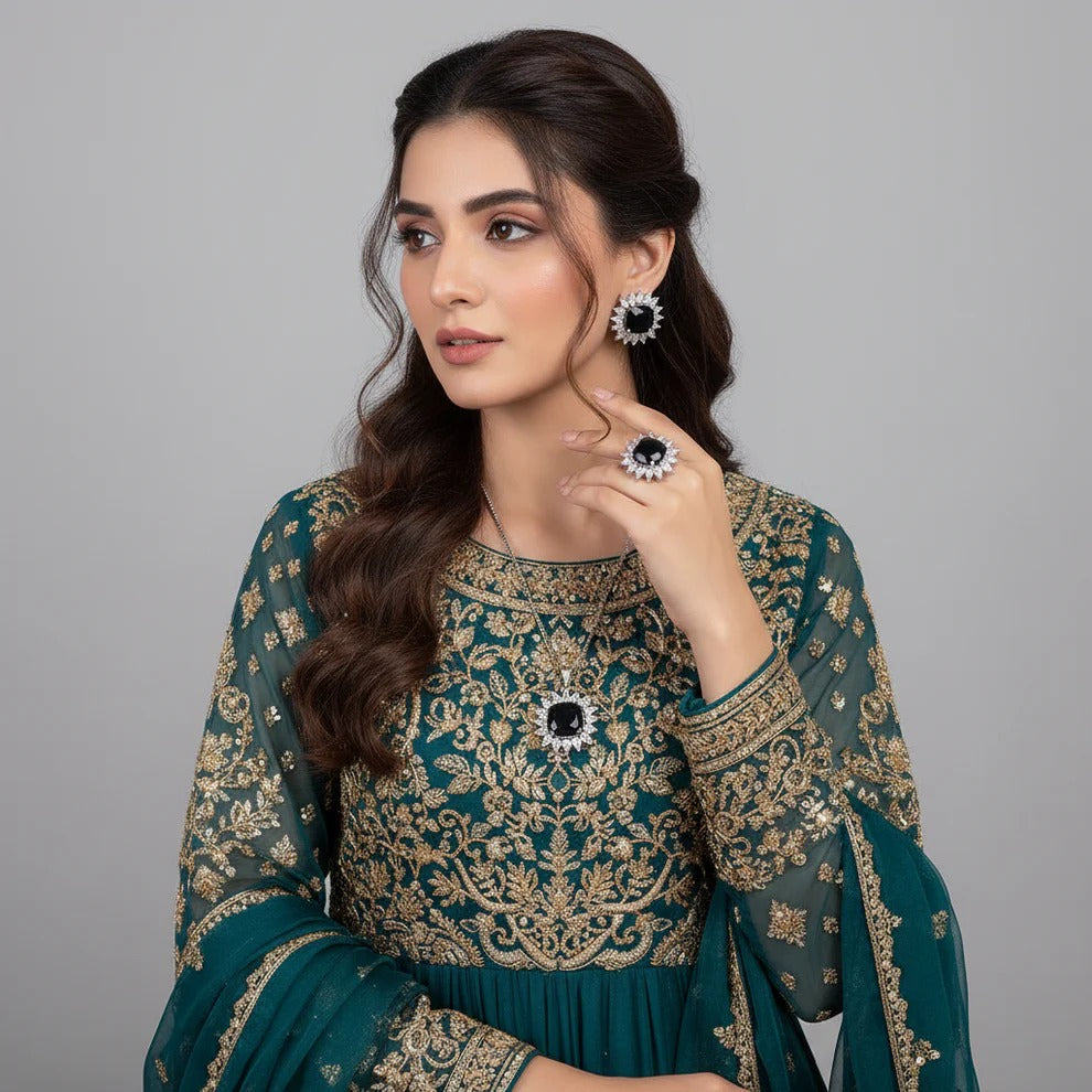 Make a striking fashion statement flaunting this bold & glamorous necklace. Perfect for an everyday look & a definite must have in your jewelry box!