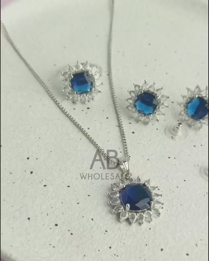 PJ-107 - Navy Blue Natural Stone Silver - Jewelry Set Of 3