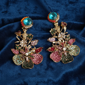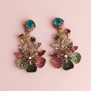 PJ-141 - Multi Diamonds Flower Vintage Gold - Earring