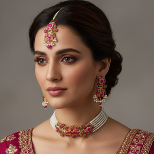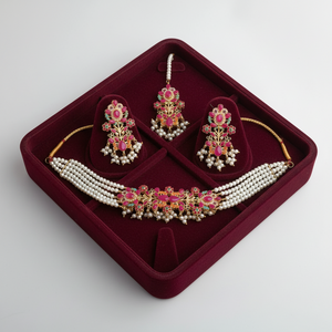 PJ-150 - Hot Pink & Gold Mala - Jewelry Set