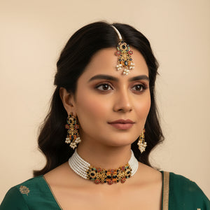 PJ-151 - Black & Gold Mala - Jewelry Set
