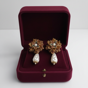 PJ-192 - Black & Pink Flower Luxury Vintage Gold - Earring
