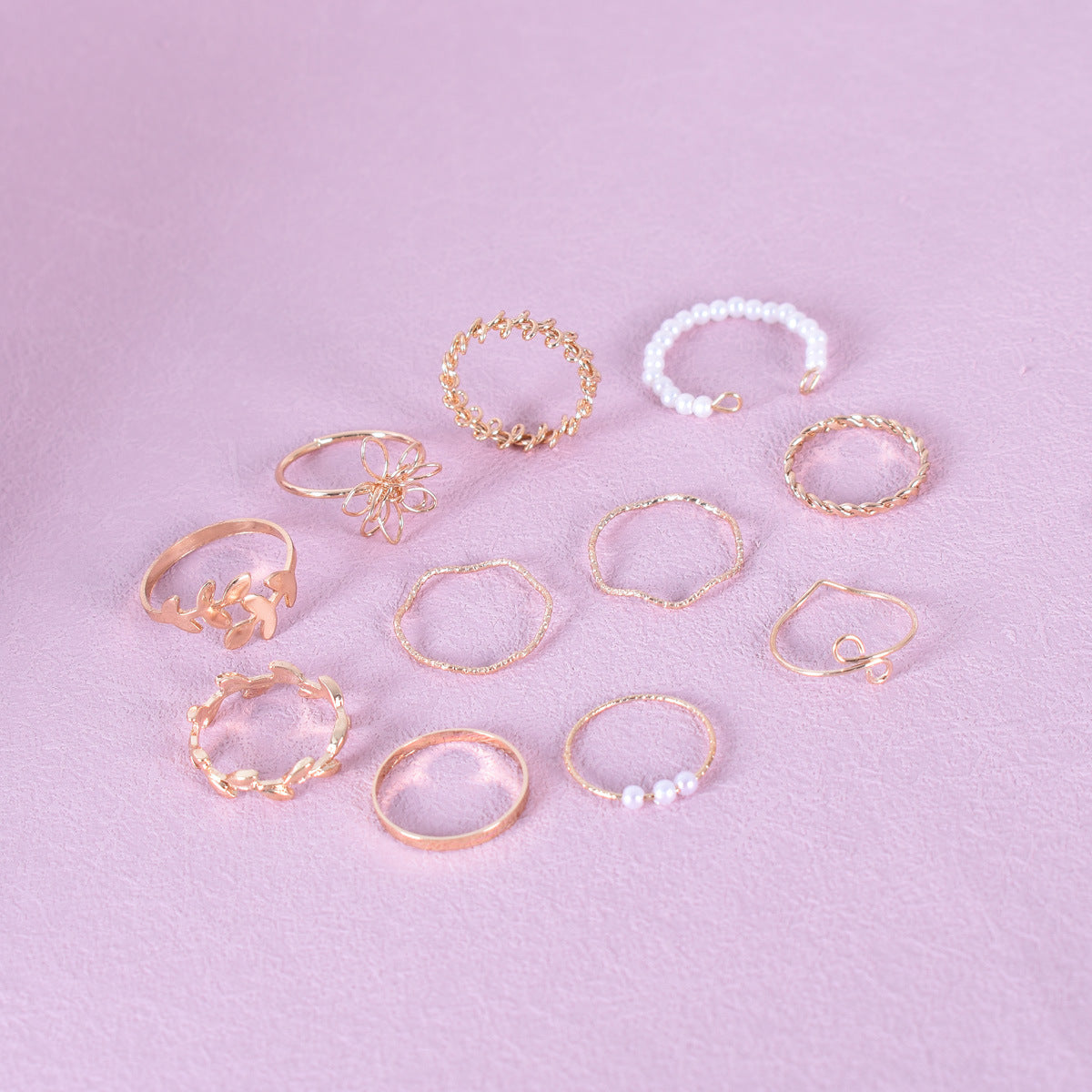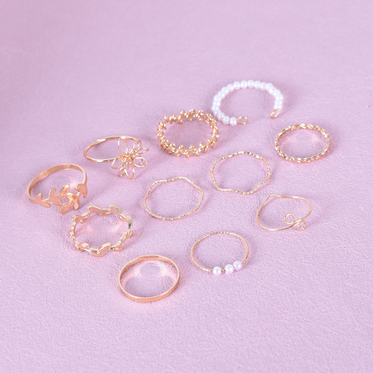 UNI-10485 - Flower & Leaf Plated - Ring Set Of 10