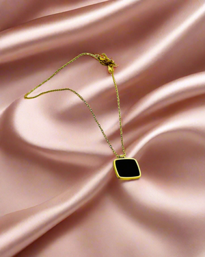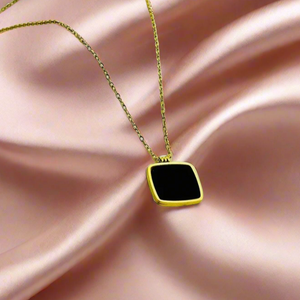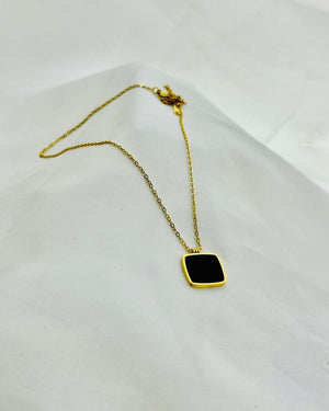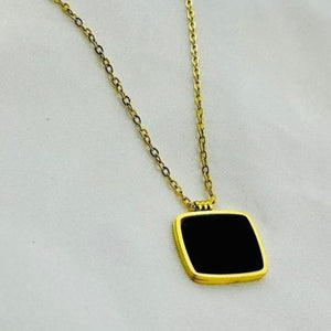 SS-1021 - Classy Black Square Gold - Necklace