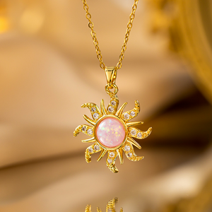 SS-10822 - Gold Sun Pink Stone Twist Chain - Necklace