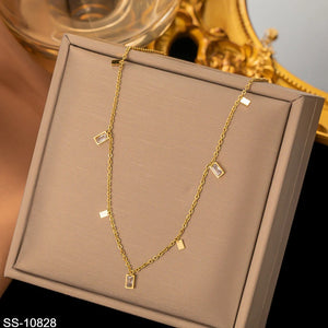 SS-10828 - Square Crystal Tassel Gold - Necklace