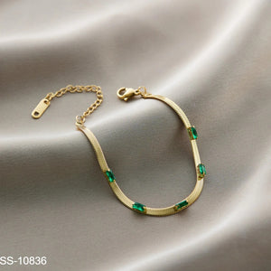 SS-10836 - Green Gems Gold Chain - Bracelet