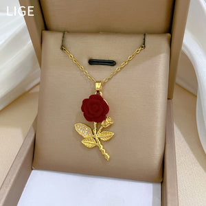 SS-12066 - Luxury Red Rose Gold - Necklace