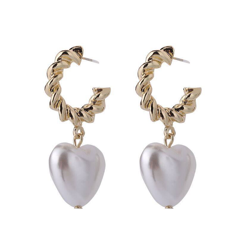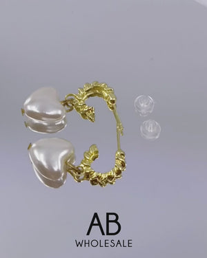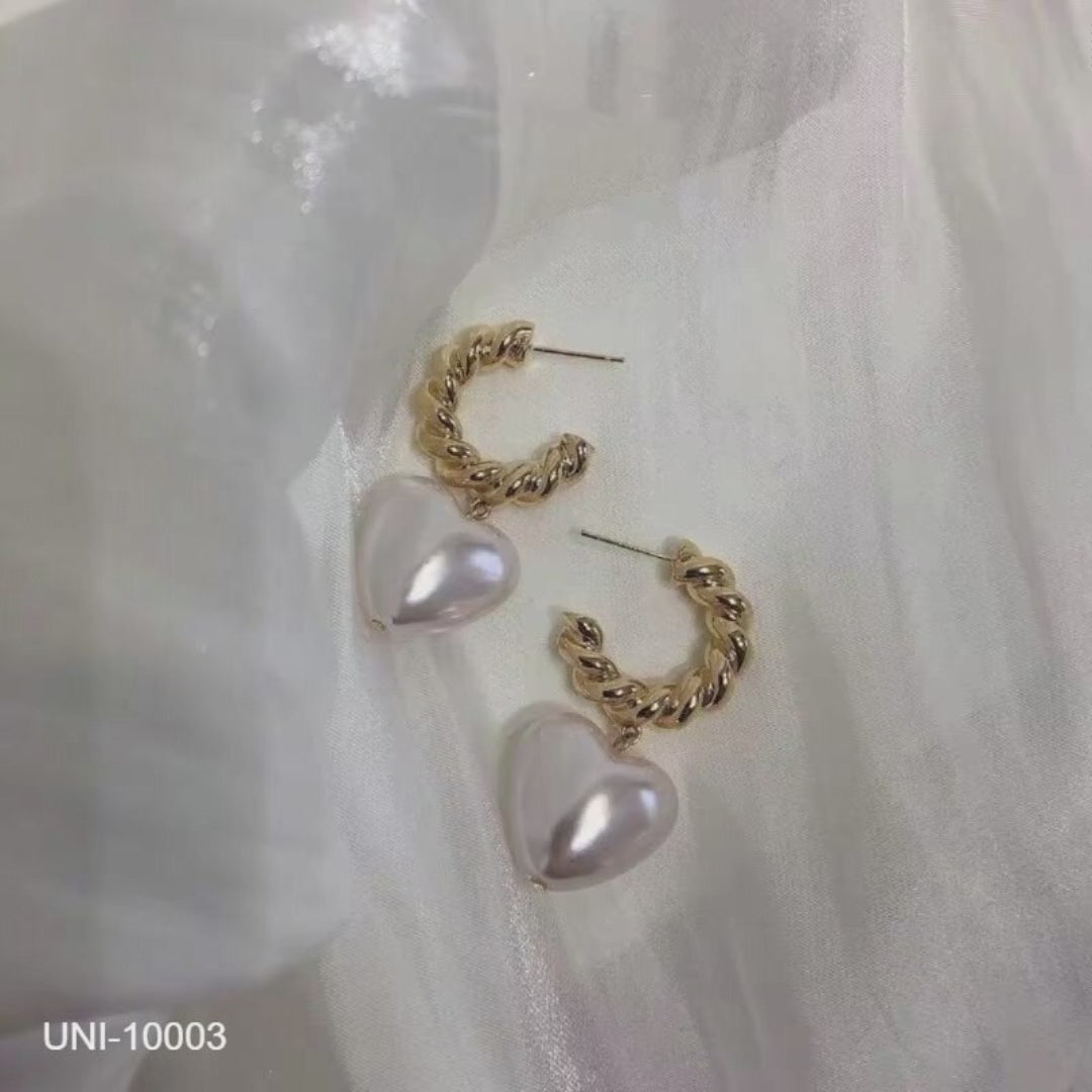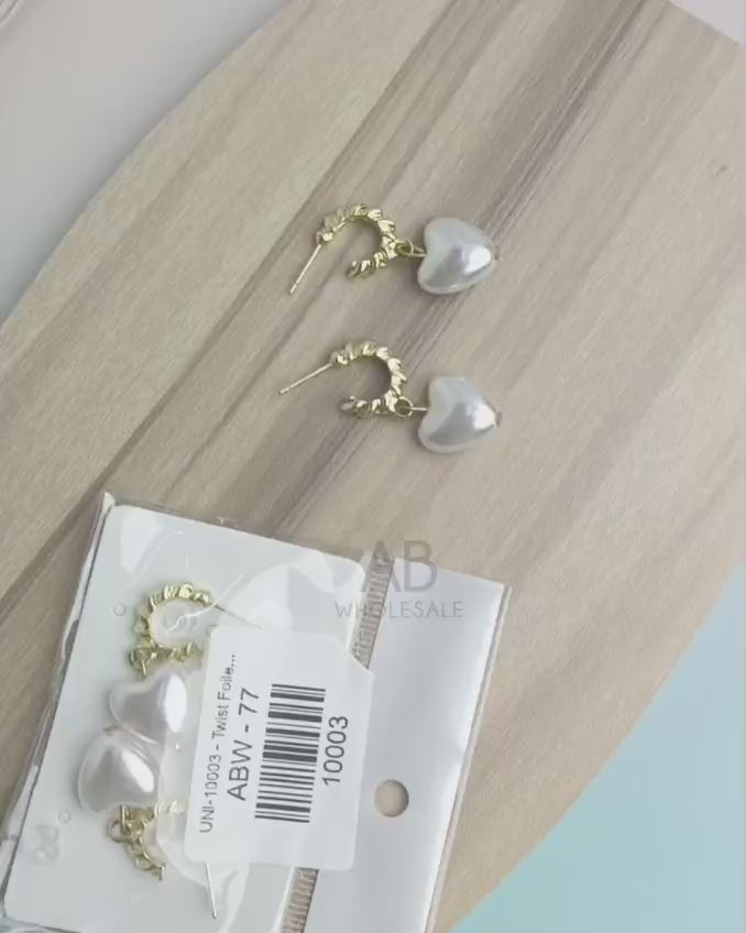 UNI-10003 - Twist Foiled Pearl Heart - Earring
