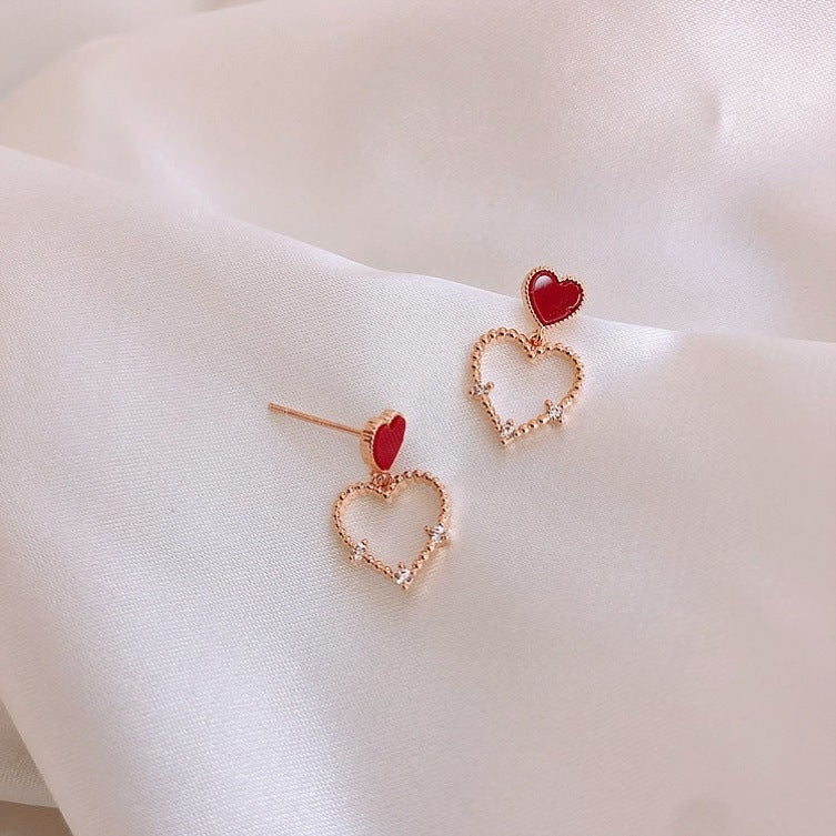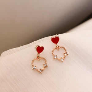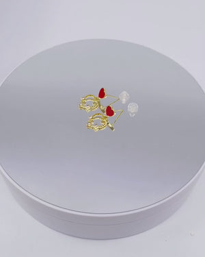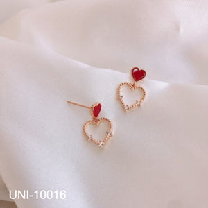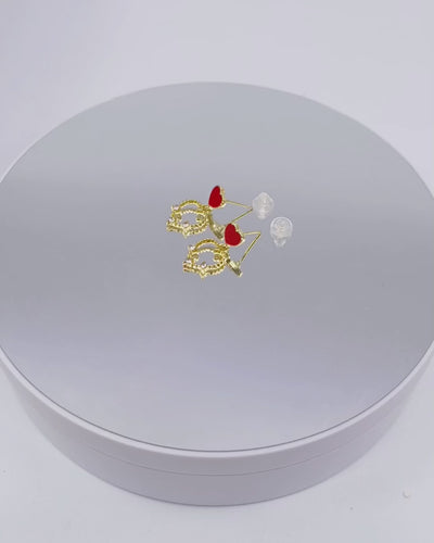 UNI-10016 - Red Heart Crystal Diamonds Gold - Earring