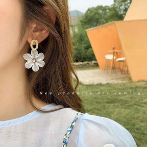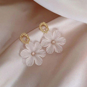 UNI-10030 - White Flower Gold - Earring