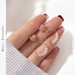 UNI-10063 - Pink Heart Pearl Ring - Earring (DISCONTINUED FROM SELLER)