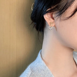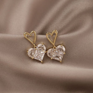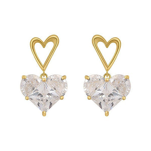 UNI-10104 - Crystal Diamond Heart Gold - Earring