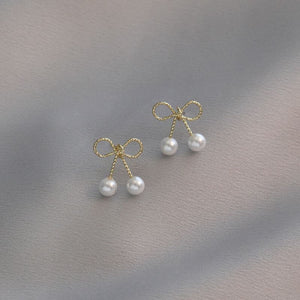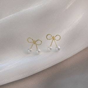 UNI-10118 -Pearl Gold Bow - Earring