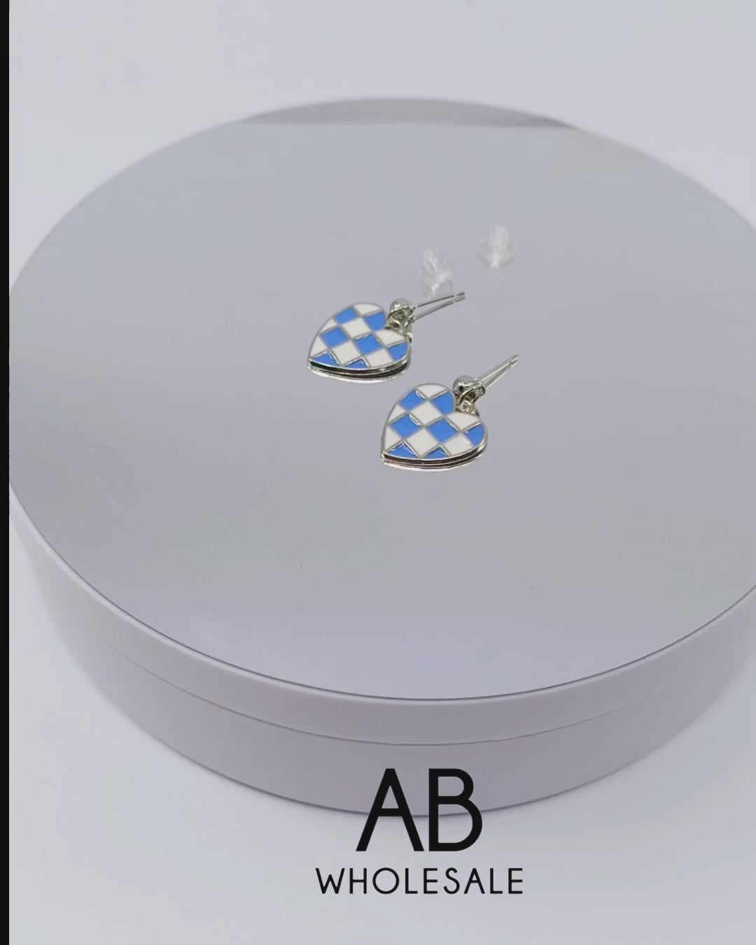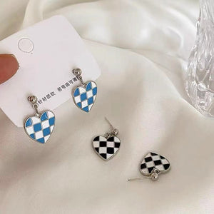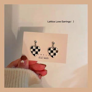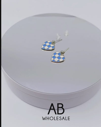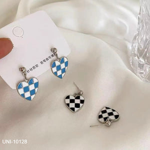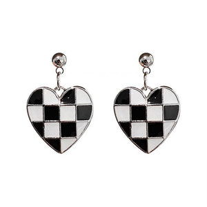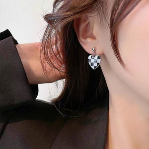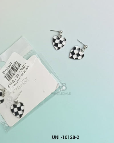 UNI-10128 - Heart Black & White Grid Silver Foiled - Earring