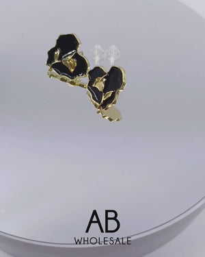 UNI-10138 - Elegant Rose Black Heart Gold - Earring
