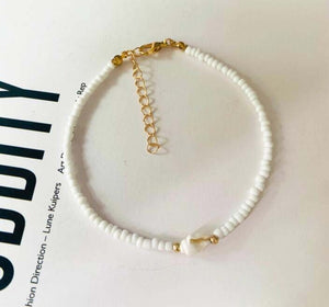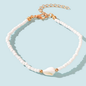 A touch of the ocean’s beauty. This Bracelet with Seashell offers the perfect balance of natural charm and feminine elegance. A seashell, paired with white beads, creates a soft, beautiful design that evokes the carefree spirit of the sea. Whether worn alone for a light, breezy look or layered with other bracelets for a more eclectic style, this piece is an effortless way to incorporate coastal beauty into your everyday wear.