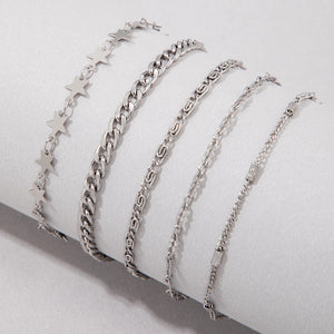 Stack up your style! This Set of 5 Trendy Stackable Bracelets gives you the freedom to create your perfect stack! With five stunning bracelets to choose from, each with its own unique style—from minimalist designs to bold, eye-catching pieces—you can mix and match to express your individuality. Whether you’re going for a subtle layered look or an eclectic statement, this set has everything you need to curate your own style.