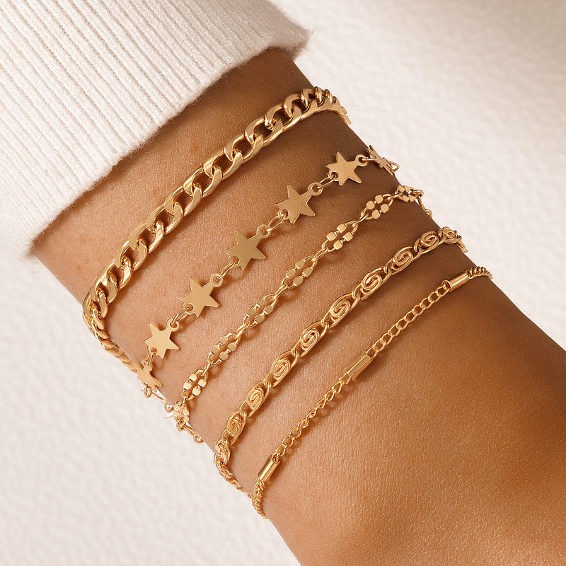 Stack up your style! This Set of 5 Trendy Stackable Bracelets gives you the freedom to create your perfect stack! With five stunning bracelets to choose from, each with its own unique style—from minimalist designs to bold, eye-catching pieces—you can mix and match to express your individuality. Whether you’re going for a subtle layered look or an eclectic statement, this set has everything you need to curate your own style.