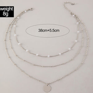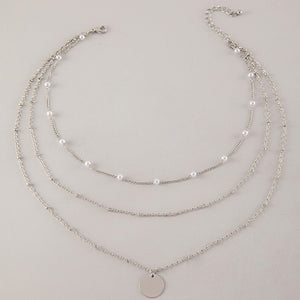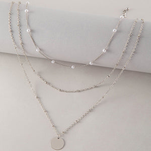 UNI-10153-3 - Pearl Layered 3 Silver - Necklace
