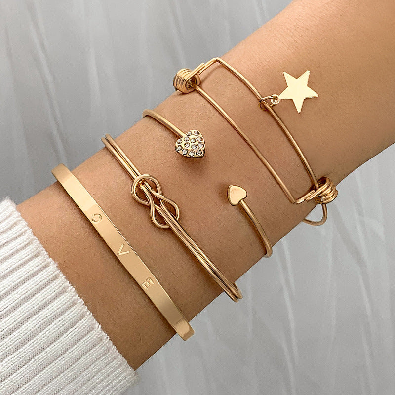 UNI-10161-3 - Gold Diamond Heart Foiled Star - Bracelet Set of 4
