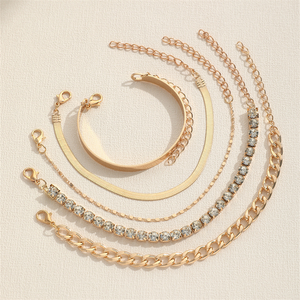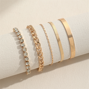 UNI-10161 - Crystal Diamond Foiled Chain - Bracelet Set of 5