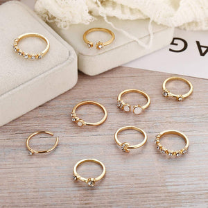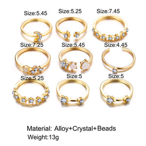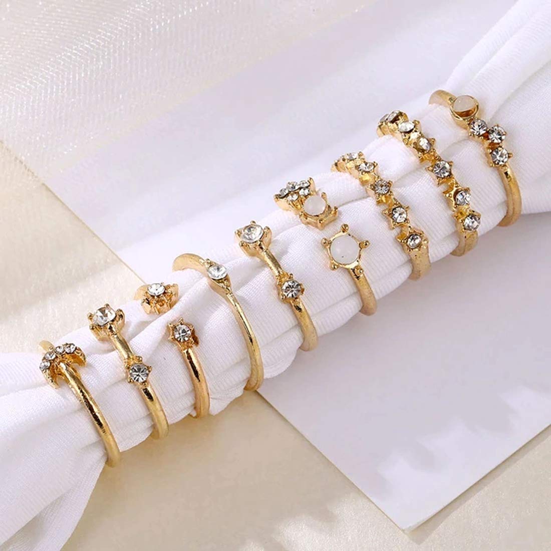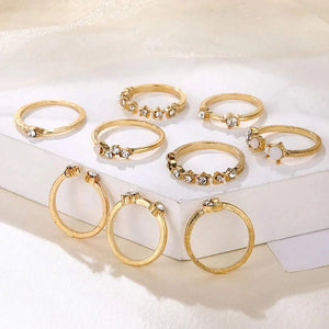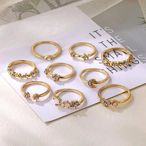 UNI-10168-33 - Moon & Star Sparkle Gold - Ring Set Of 9