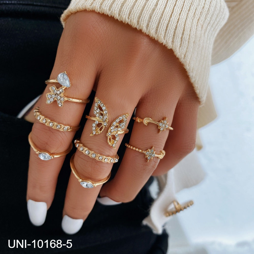 UNI-10168-5 - Sparkle Butterfly Diamond Gold - Ring Set Of 8