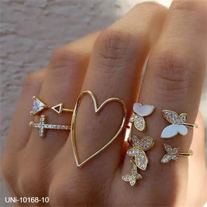 UNI-10168-10 - Blinky Butterfly & Heart Gold - Ring Set Of 5