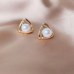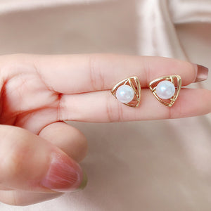 UNI-10228 - Pearl Triangle Gold - Earring