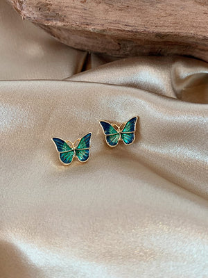 UNI-10230 - Green & Black Butterfly Gold - Earring