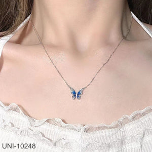 UNI-10248 - Blue Butterfly Silver - Necklace
