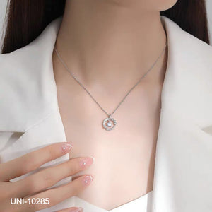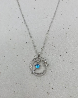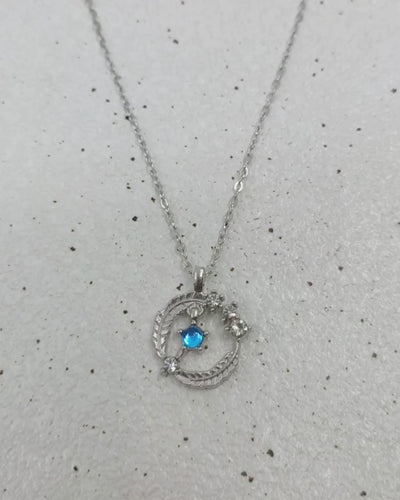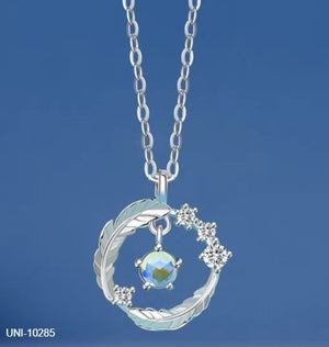 UNI-10285 - Blue Diamond Feather Circle - Necklace